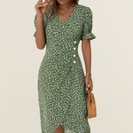 • Diseño: Elegante vestido veraniego con escote en V y mangas de campana con volantes.